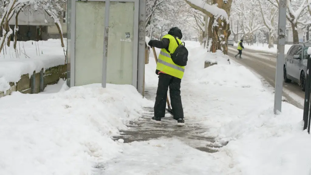 Manual clearing of walkways and building entrances to prevent slips and ensure accessibility.