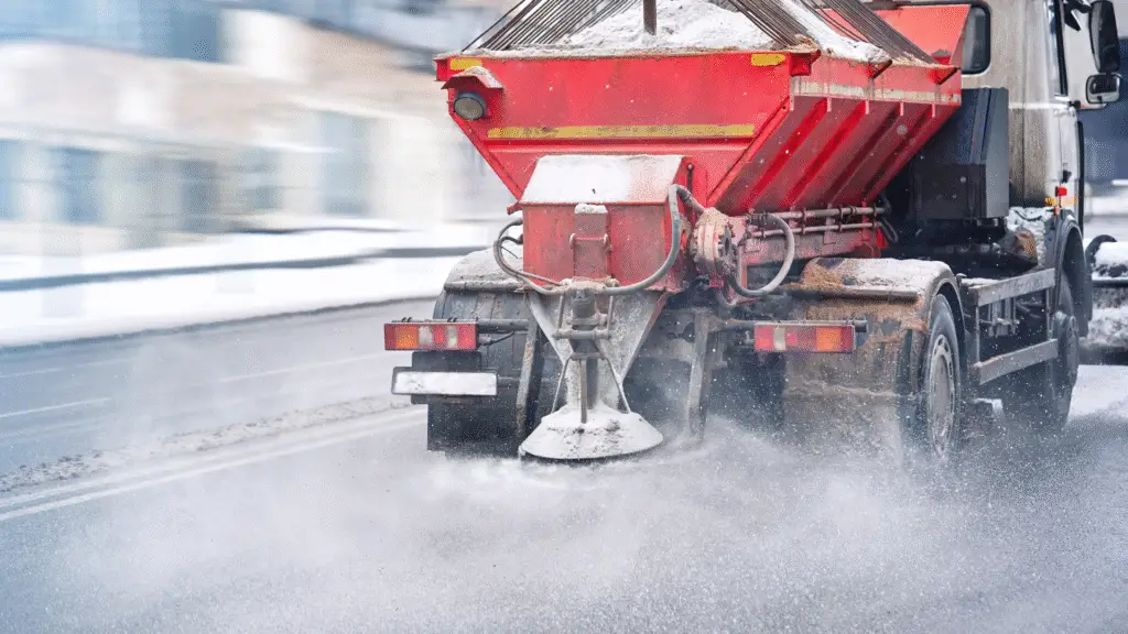 Application of salt or environmentally safe alternatives to minimize ice buildup and increase safety.